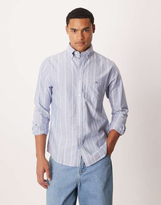 GANT - Blå klassisk Oxford-skjorte med logo og striber i regular fit