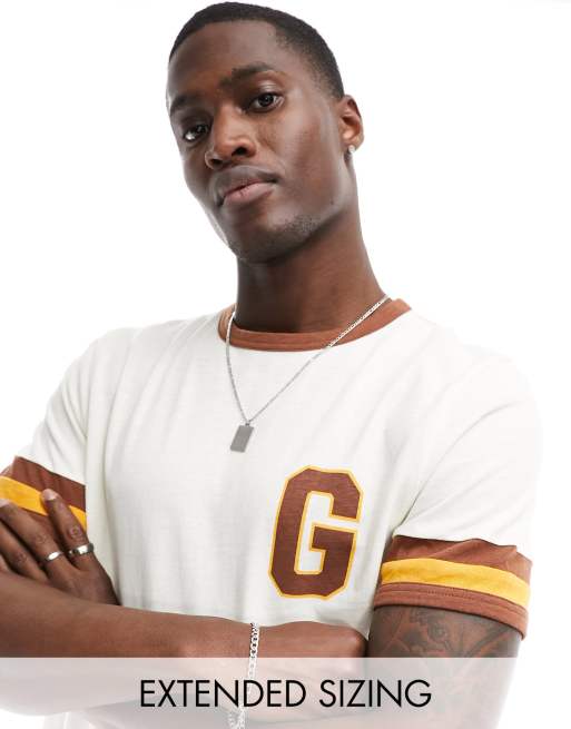 GANT - Cremefarvet T-shirt i ringer-stil med retrologo