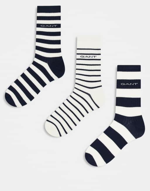GANT - Marineblå sportssokker med stribe og logo i pakke med 3 par