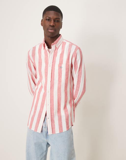 GANT - Murstensrød skjorte med skjoldlogo og striber i hør/bomuld