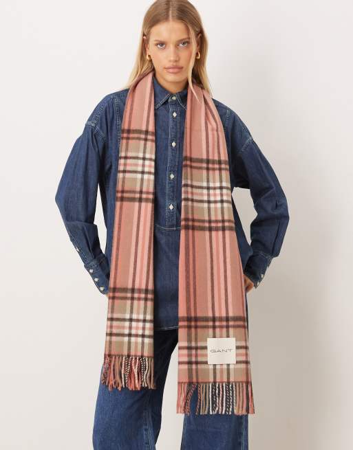 GANT - Pink halstørklæde med skotsktern i uld