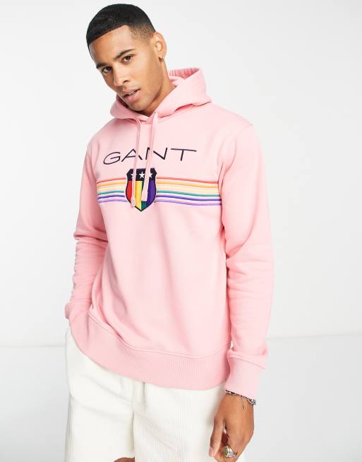 GANT - Pride capsule - Pink stribet hættetrøje med logo og emblem