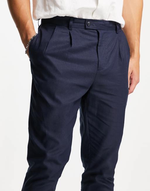 Gianni Feraud - Plisserede hørbukser i marineblå - Del af sæt