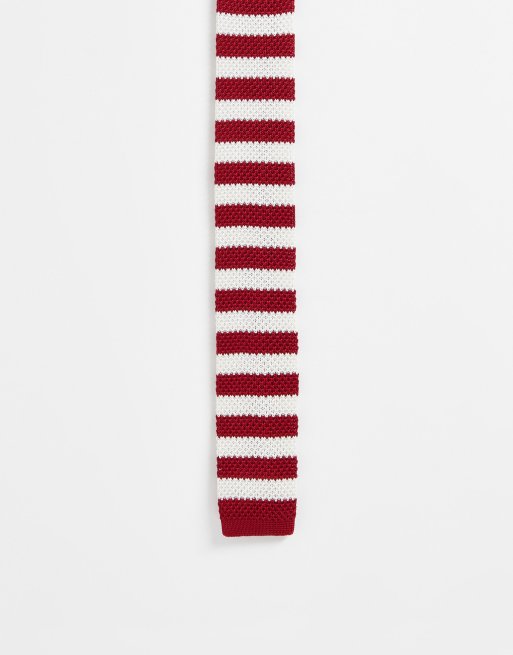Gianni Feraud - Strikket slips med bordeaux og cremefarvede striber