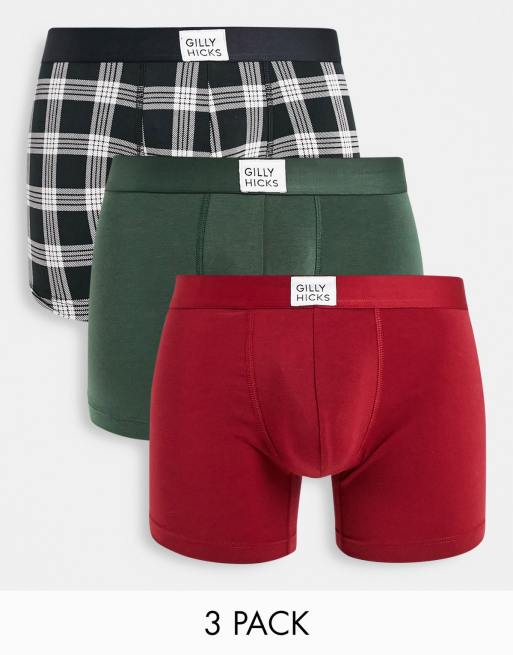 Gilly Hicks - Pakke med 3 par boksershorts med logo-taljebånd i grøn, rød og med sorte tern