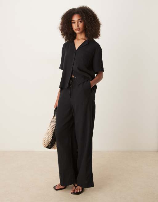 Gina Tricot - Afslappet og sort gazesæt med kortærmet skjorte og bukser