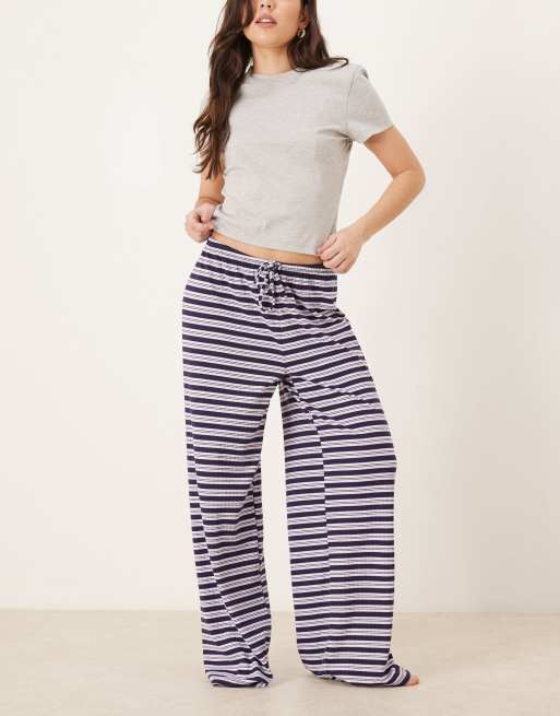 Gina Tricot - Lilla stribede bukser i superblød jersey med vide ben og løbesnor i taljen