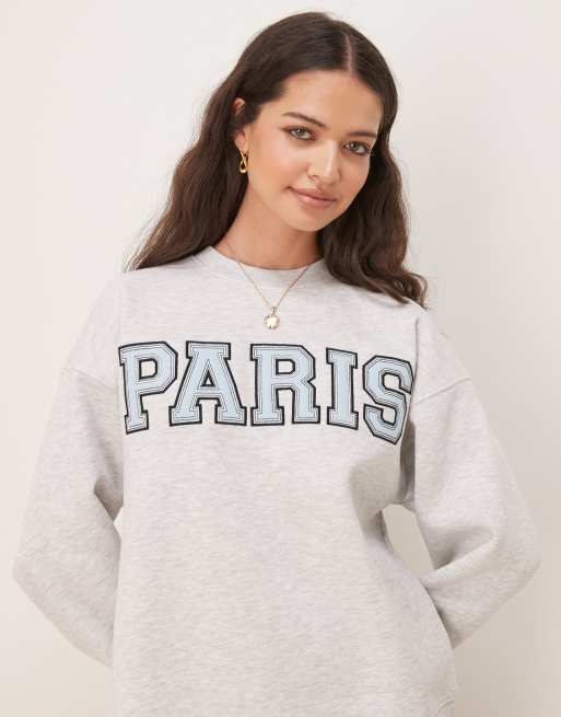 Gina Tricot - Lysegråmeleret oversized sweatshirt med 'Paris'-logo