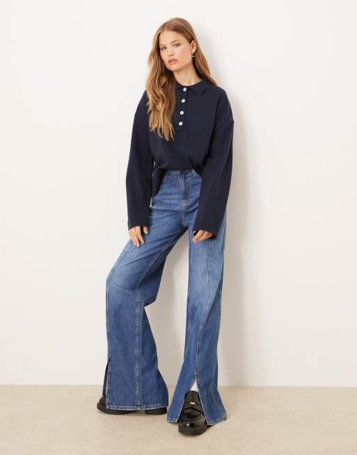 Gina Tricot - Marineblå strikket sweater med krave og lange ærmer