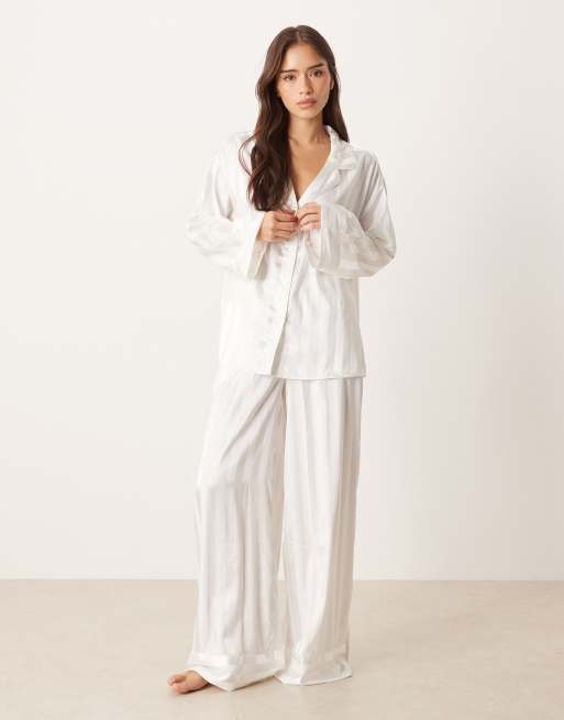 Gina Tricot - Mix og match - Hvid stribet pyjamas i satin