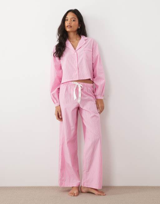 Gina Tricot - Mix og match - Lyserød pyjamas med striber i poplin