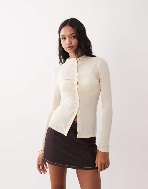Gina Tricot - Råhvid slim fit-overdel med ståkrave og knapper