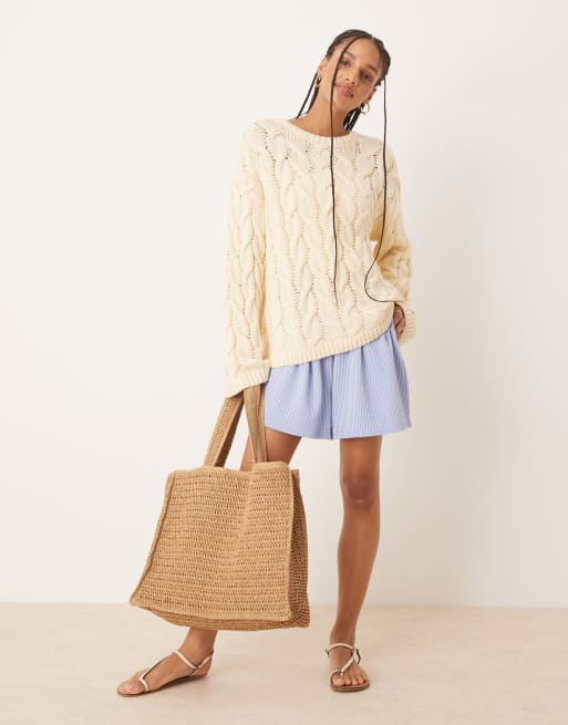 Gina Tricot - Smørgul oversized kabelstrikket sweater