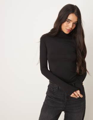 Gina Tricot - Sort top med høj hals og lange ærmer i blød jersey