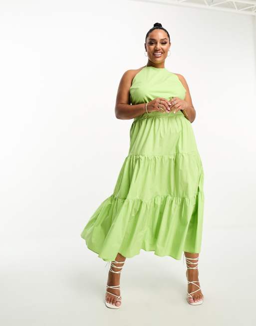 Glamorous Curve - Lagdelt midikjole med halterneck i grøn