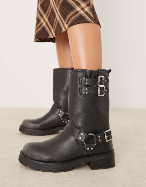 Glamorous Wide Fit - Forvaskede og grå bikerstøvler med remme