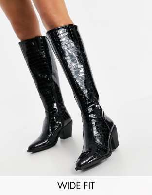 Glamorous Wide Fit - Sorte knæhøje western-støvler