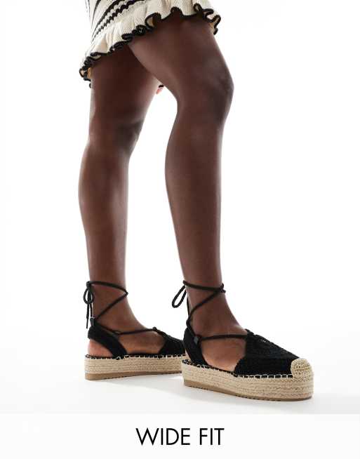 Glamorous Wide Fit - Sorte og flade espadriller i hæklet design