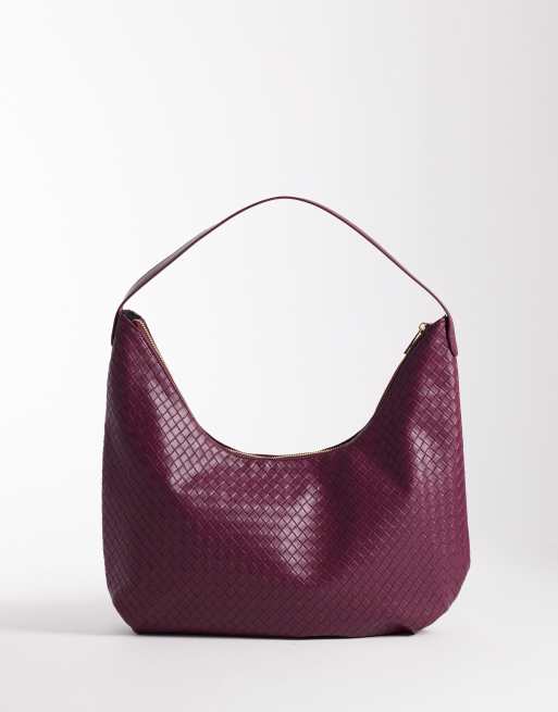 Glamorous - Bordeauxfarvet oversized skuldertaske i flettet imiteret læder