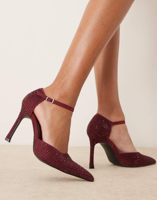 Glamorous - Bærrøde pumps med høj hæl og spids snude samt udsmykning