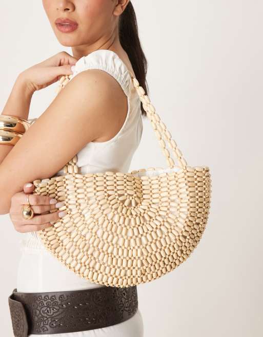 Glamorous - Cremefarvet halvmåneformet skuldertaske med perler
