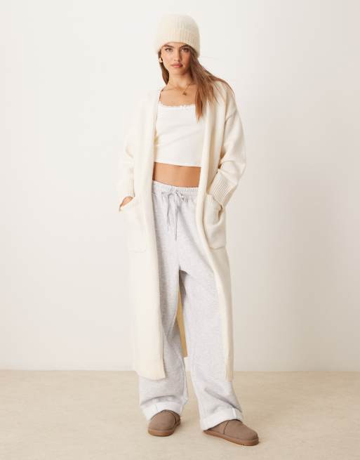 Glamorous - Cremehvid maxi-cardigan i blødt strik