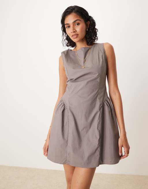 Glamorous - Gråbrun shift-minikjole med hoftedetaljer