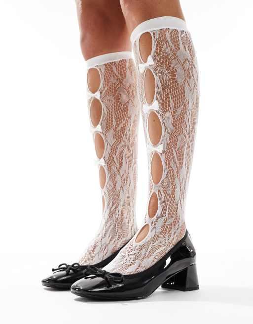 Glamorous - Hvide sokker med hulmønster og sløjfe foran