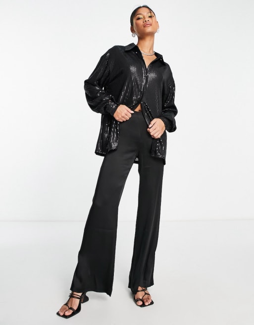Glamorous - Oversized matsort skjorte og højtaljede bukser med svaj