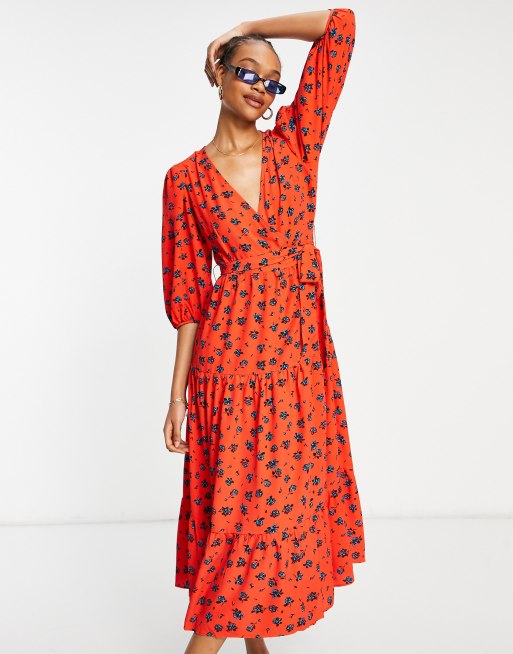 Glamorous - Rød tea-minikjole med blomstermønster