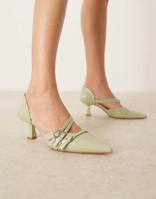 Glamorous - Salviegrønne slingback-sko med kitten-hæl