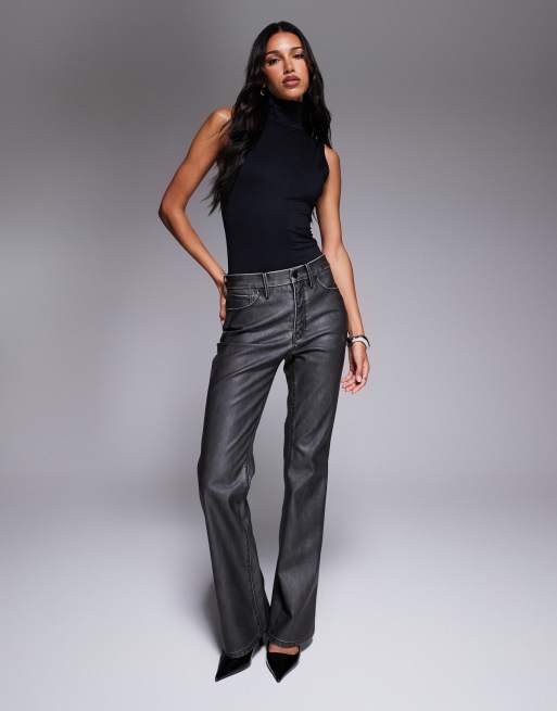 Good American - Good Classic - Sorte bootcut-jeans i imiteret læder