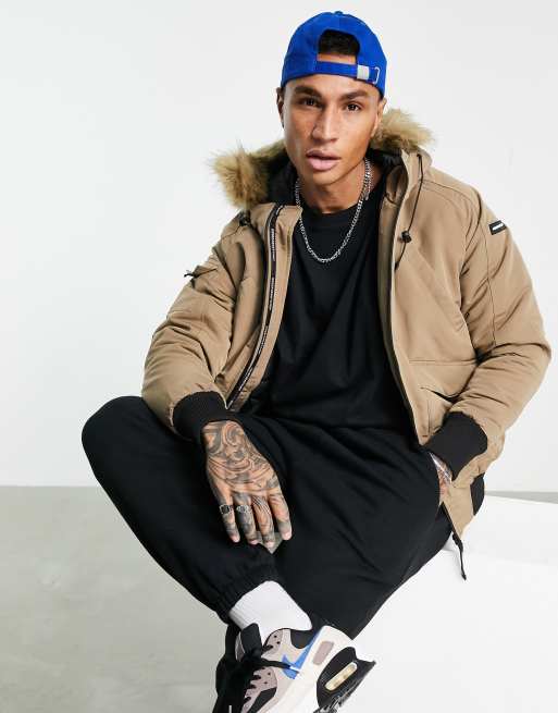 Good For Nothing - Beige bomber-jakke med pelshætte