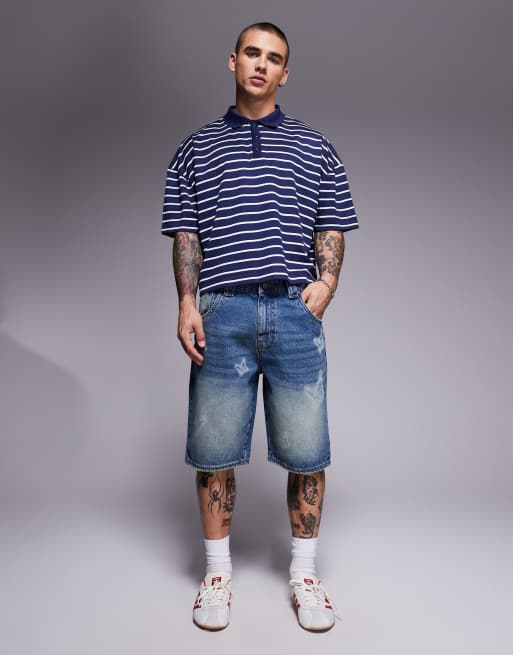 Good For Nothing - Denimshorts i blå mellemvask med sommerfugleprint