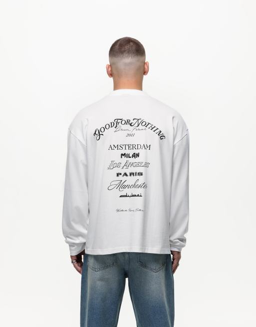 Good For Nothing - Langærmet T-shirt i offwhite med print på ryggen