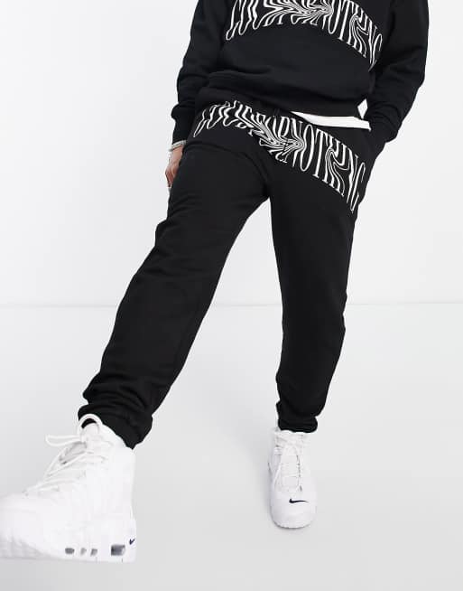 Good For Nothing - Sorte joggingbukser i jersey med forvrænget logoprint - Del af sæt