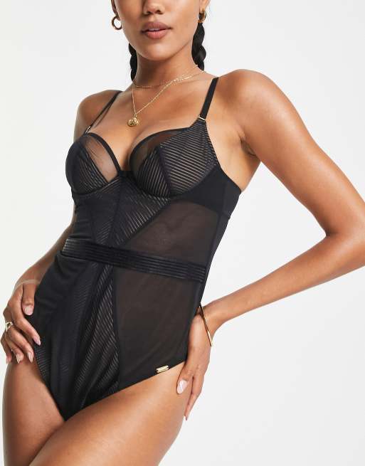 Gossard - Sort uforet mesh-bodystocking med dyb udskæring