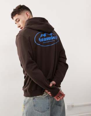 Gramicci - Mørkebrun hættetrøje med bjerggrafik