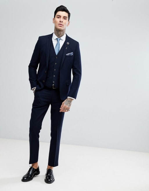 Marineblåt kurvevævet jakkesæt med smal pasform fra Harry Brown