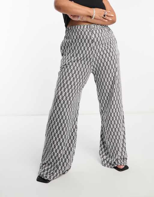 Heartbreak Plus - Sort/hvide bukser med vide ben og geometrisk print - Del af sæt