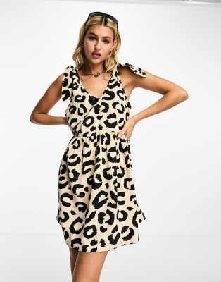 Heartbreak - Babydoll-kjole med bindestropper og leopardprint i poplin