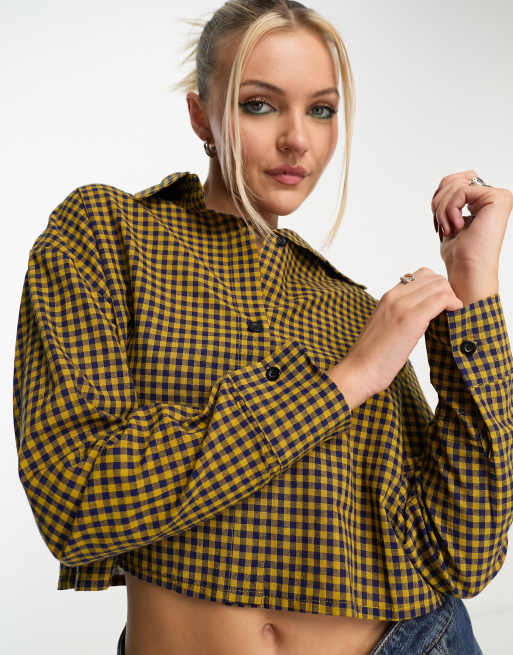 Heartbreak - Cropped skjorte i gult tern - Del af sæt