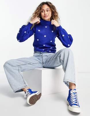 Heartbreak - Oversized, højhalset trøje med hjertebroderi i lilla