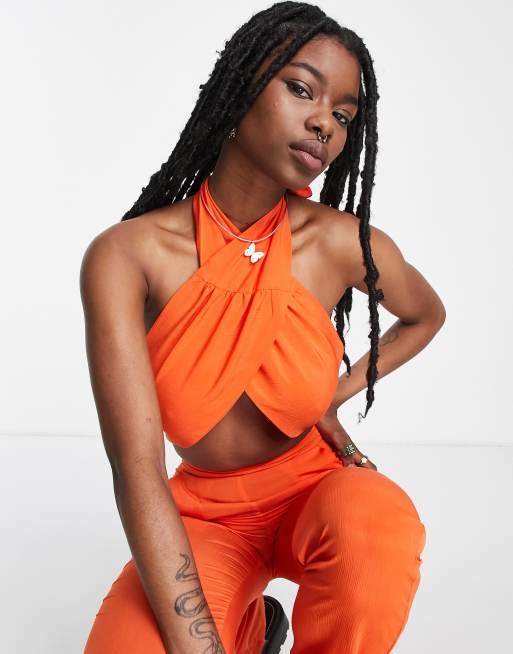 Heartbreak - Top med halterneck og krydsfront i orange - Del af sæt