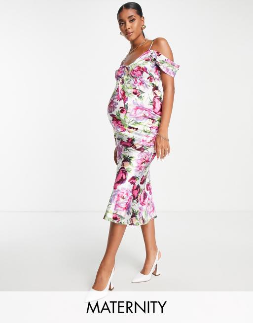 Hope & Ivy Maternity - Kerry - Lyserød offshoulder-kjole med print