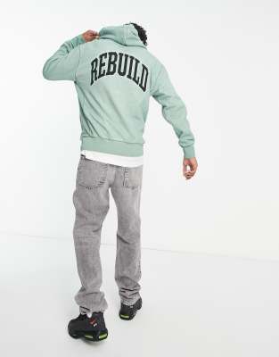 HUF - Grøn hættetrøje med 'Destroy and Rebuild'-print
