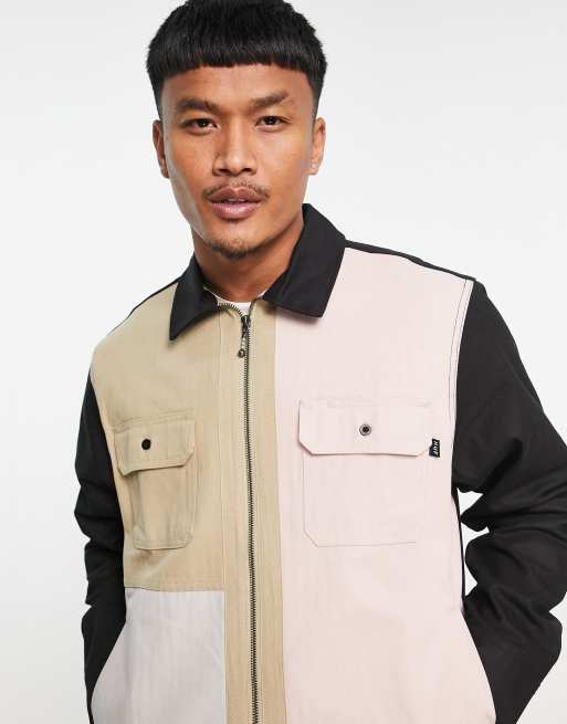 HUF - Sort og lyserød arbejdsjakke med opdelt design og lynlås