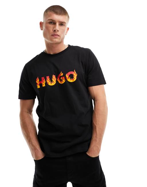 HUGO - Danda - Sort T-shirt med flammer