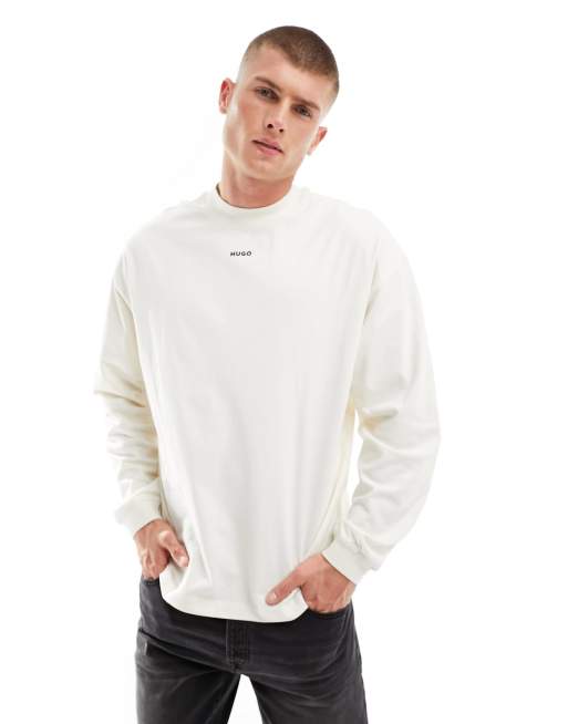 HUGO - Daposo - Hvid og langærmet T-shirt med afslappet pasform