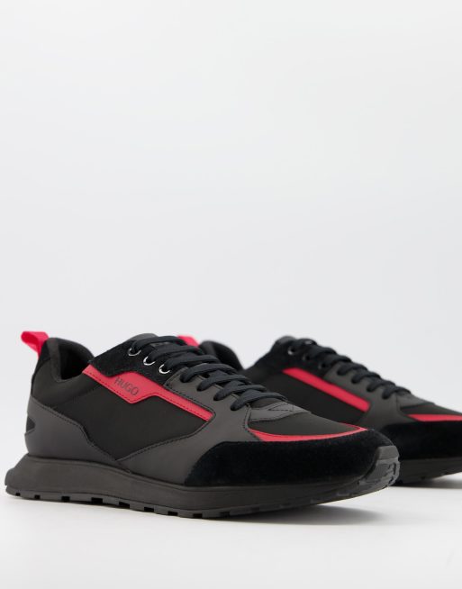 HUGO - Icelin Runn - Sneakers med kontrastlogo i sort/rød
